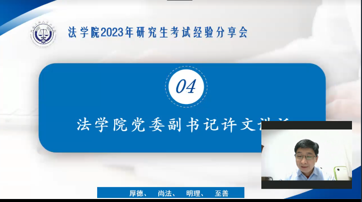 历来高度重视学生考研工作,把考研作为促进优良学风建设、助力学生成长成才的系统工程来抓。在学生备考期间,多次举办考研经验交流、专业老师考前指导讲座等,为考研学生指点迷津,明确方向,提供支持。此次分享交流,为百米冲刺阶段的考研学子送去温情关怀和真挚祝福,有助于同学们缓解紧张情绪、坚定考研信心、树立必胜信念。