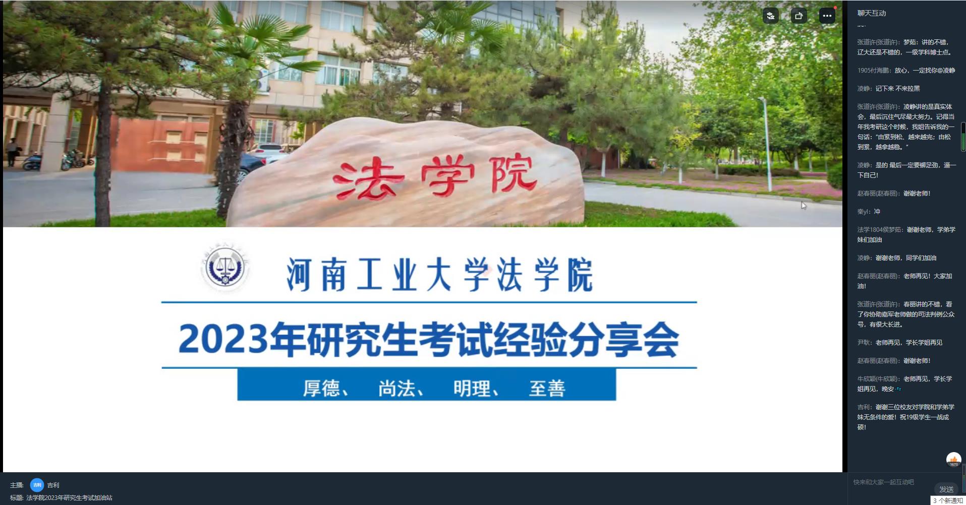 通过钉钉平台举行2023年研究生考试经验分享会。街射