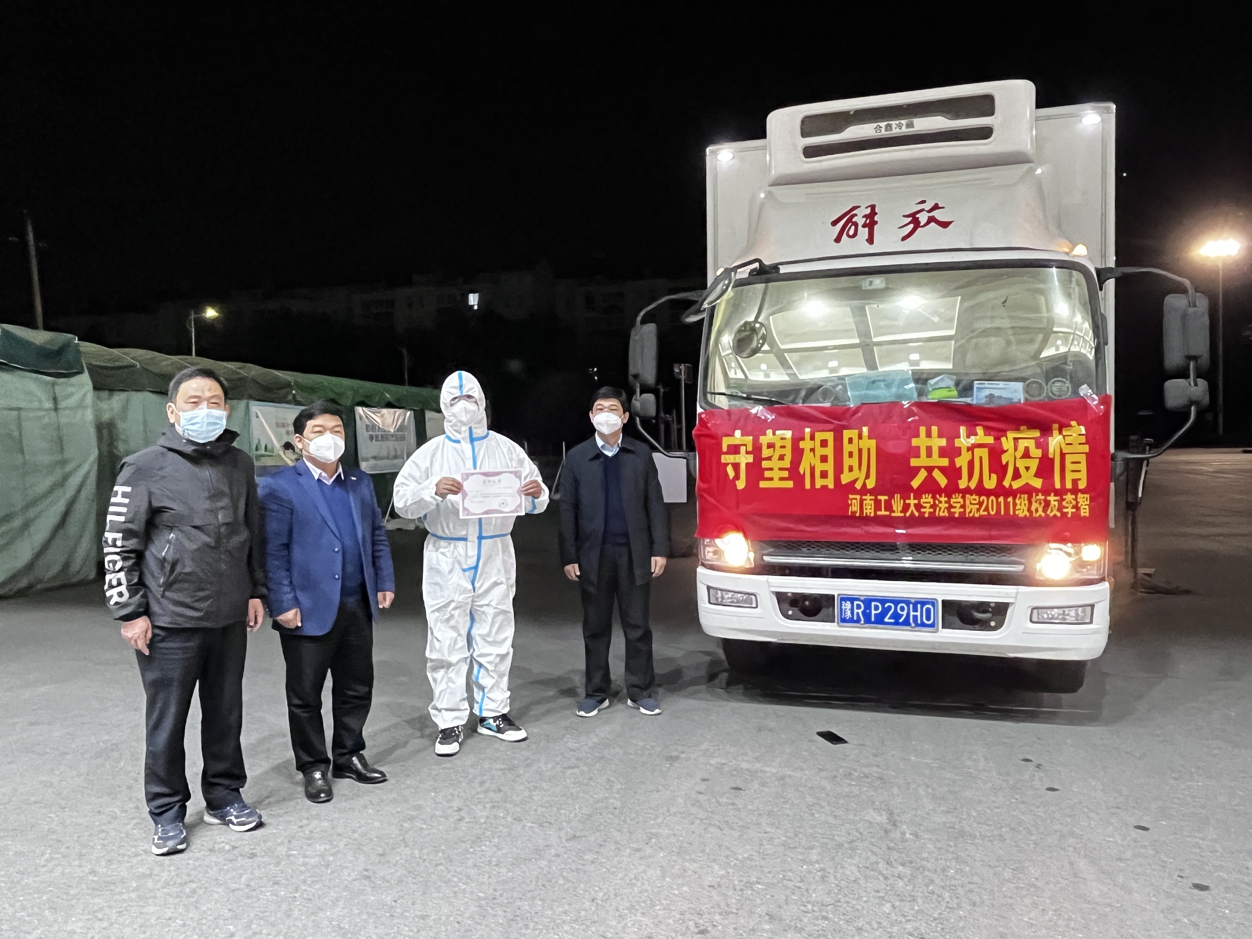 2011级优秀校友,现任郑州钱大妈农产品有限公司蔬菜采购负责人。在获悉学校疫情后,11月4日晚,李智主动联系毕业论文指导教师李棽教授,表达想为母校捐赠蔬菜、食品等急需物资的意愿。5日下午3点捐赠物资在中牟开始装车,经过市区多个站点,于当晚11点50分许运抵莲花街校区南门。经过车辆消杀、抗原检测等防疫程序后,校友办和学院负责同志代表学校在南门举行了简短的捐赠仪式,对李智校友的善举表示衷心感谢,并为其颁发捐赠证书。韩永刚表示,在学校疫情防控的关键时期,李智校友的爱心捐赠,让在校师生深受感动、倍感温暖。