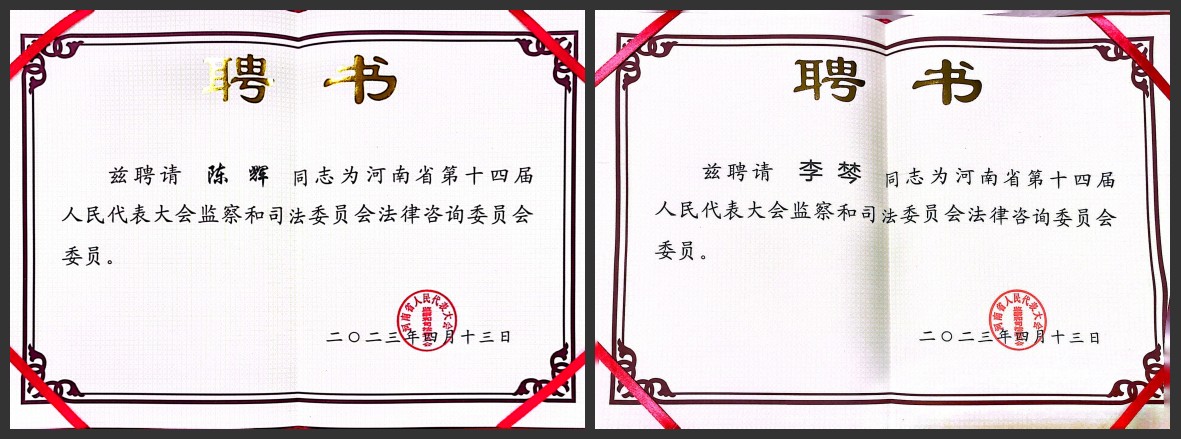 两名教师被聘为河南省第十四届人大监察司法委法律咨询委员会委员,充分体现了街射