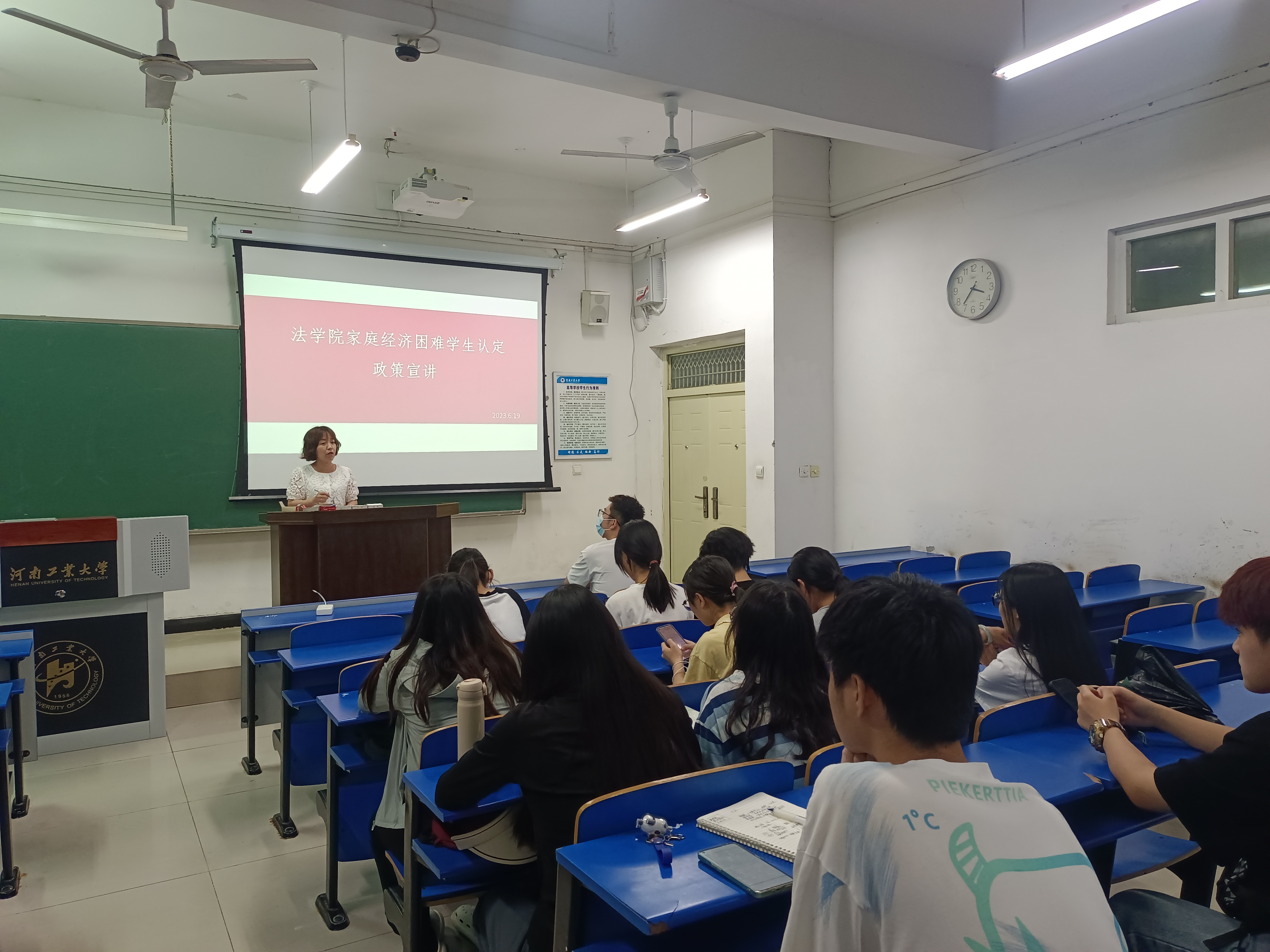 在3104会议室举行家庭经济困难认定暨资助政策宣讲会议。资助工作人员、各班评议小组成员及家庭经济困难学生代表参加会议。会议由辅导员周静主持。