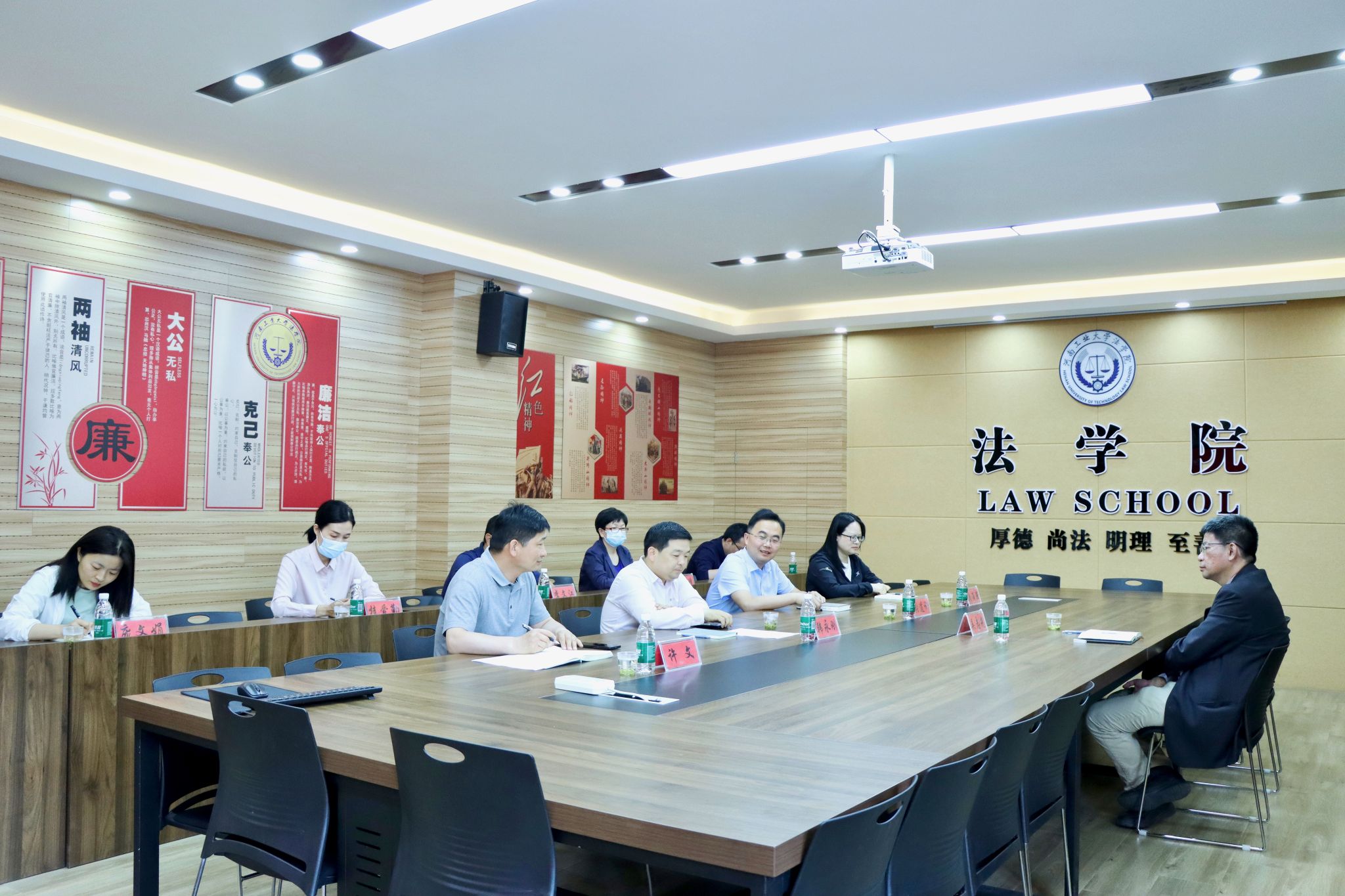 3424会议室进行,学院党委书记韩永刚主持。韩永刚首先对吴志光的参访表示热烈欢迎,并简要介绍了学院的办学特色、学科优势、人才培养等情况。他表示,大陆与台湾同属一个中国,两岸一家亲。辅仁大学法律学院与街射