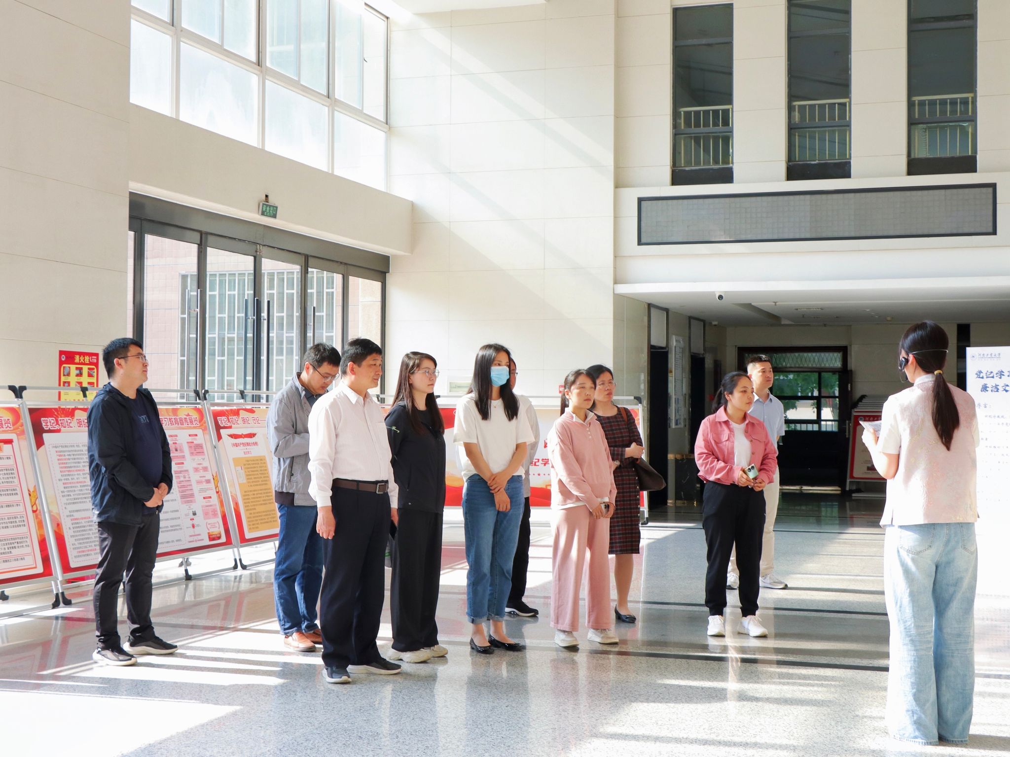 在行政楼二楼大厅,校纪委(监察专员办公室)宣传教育科副科长郑思宇首先讲解了学校党纪学习教育知识普及板块,介绍了党纪学习教育的背景、目标要求和《中国共产党纪律处分条例》中有关具体要求和实质要义;接着在学生讲解员的引导下,参观了学校师生创作的廉洁文化设计方案、手绘作品、手抄报及书画作品,作品集思想性和艺术性于一体,内涵丰富、形式多样、直观生动,让人印象深刻。大家时而驻足观看,时而交流探讨,体悟每件作品的深远寓意,接受廉政教育的洗礼,感受廉洁文化作品的警示教育意义。