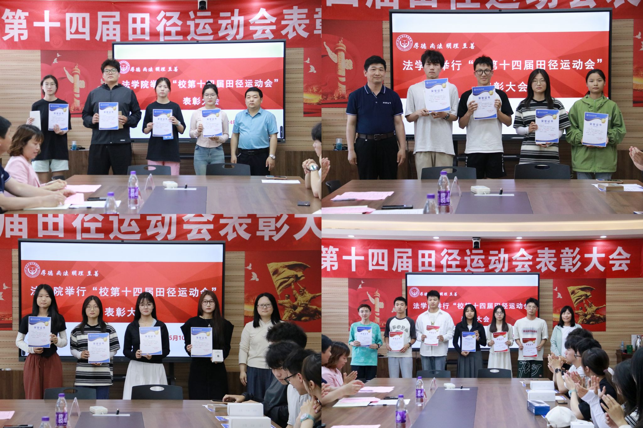 在3424会议室举行“校第十四届田径运动会”表彰大会。学院党委书记韩永刚、副书记许文、副院长南海燕、教学办副主任孙艳华及受表彰的学生代表参加会议。会议由辅导员周静主持。