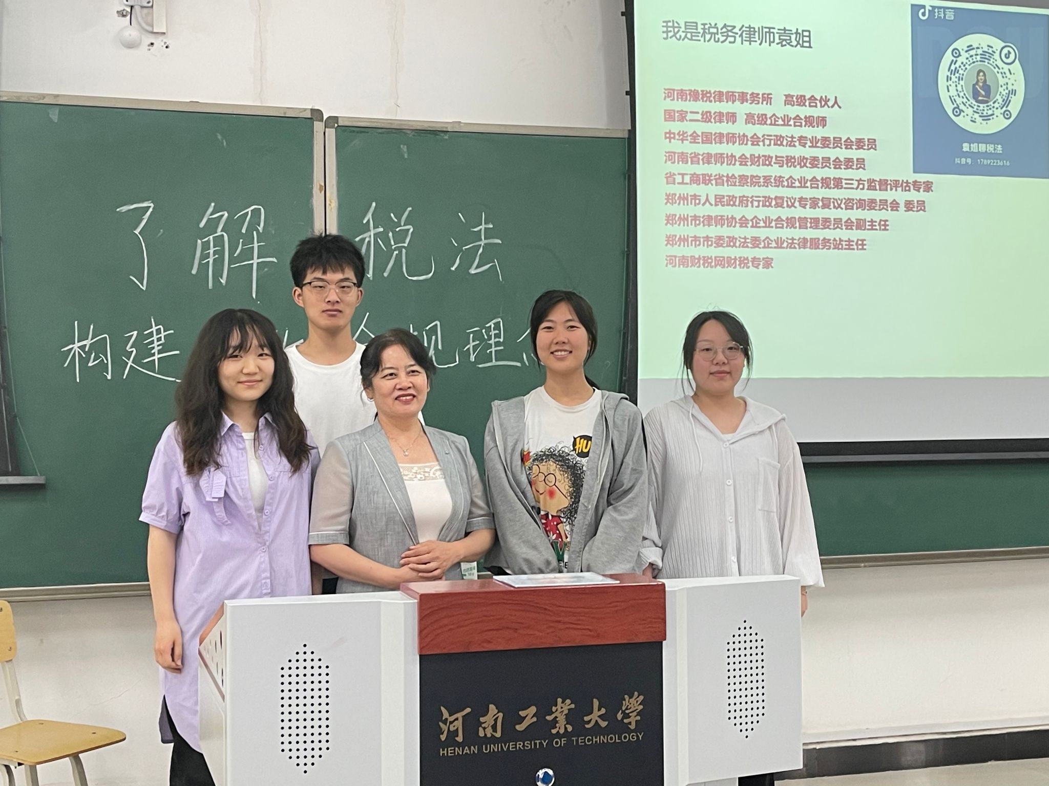 为进一步提高教学效果,培养学生理论与实践相结合的能力,提升人才培养质量,近日,河南豫税律师事务所党支部书记袁伟律师带领“税治律动”创业团队受邀来到《财税法》课堂,为法学本科生做了“了解税法,构建税收合规理念”为主题的专题讲座。