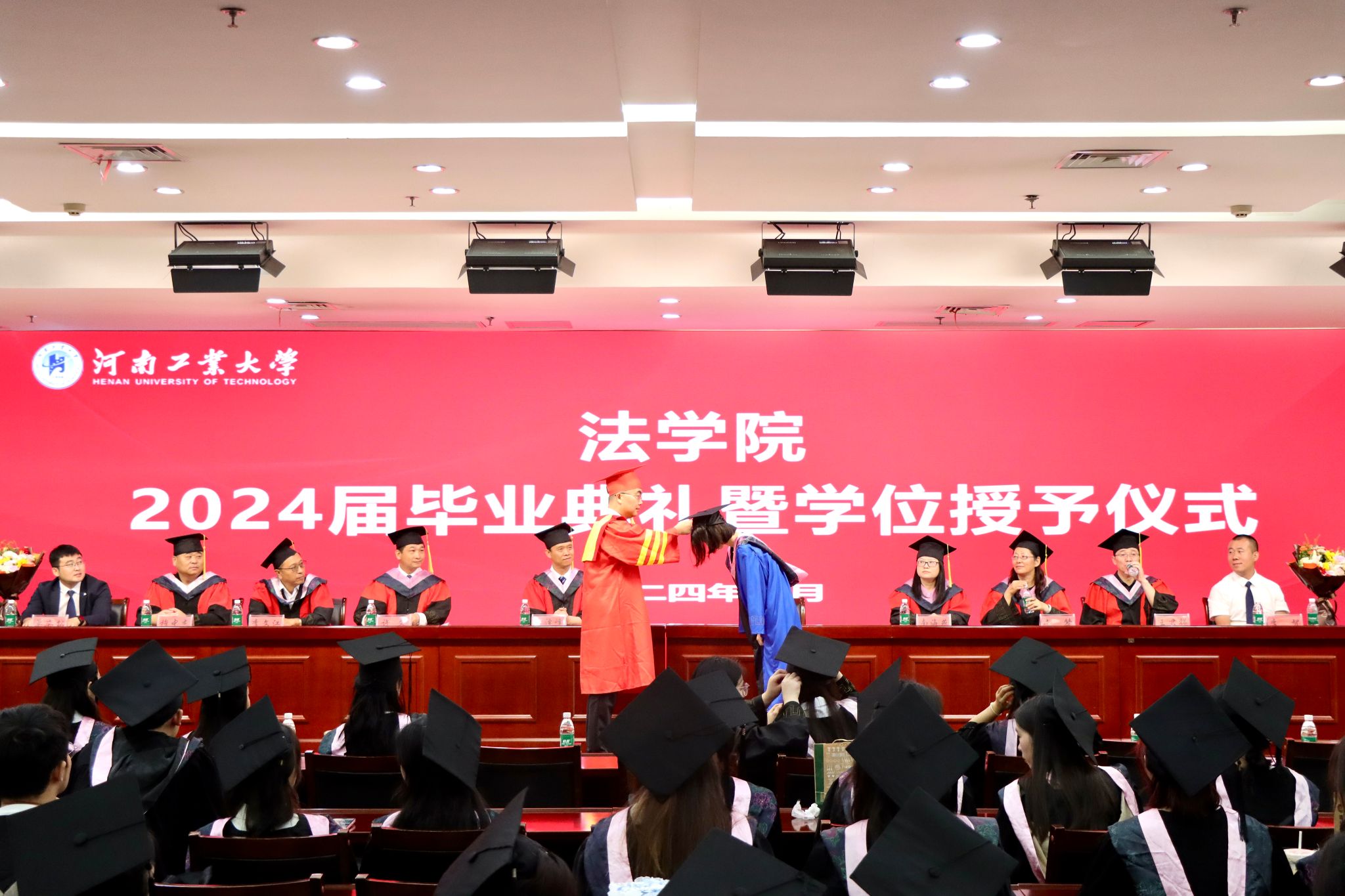 张道许在典礼上致辞。他代表学院向 2024 届全体毕业生表示热烈祝贺,向辛勤教导的老师和支持学业的家长表示衷心感谢。他希望同学们在未来的人生道路上,无论从事何种职业,都能保持工大法律人的印记,展现出工大法律人的品格、素养和思维。同时,他对毕业生提出了几点建议:一是发展不应被专业所限,要不断发现自己的热爱并为之奋斗;二是做人要真诚,真诚是最具“松弛感”的品质;三是要经常与自己和解,多一些对人生细微处的感动;四是要有做平凡的人的勇气,每天都做好自己的本职工作。