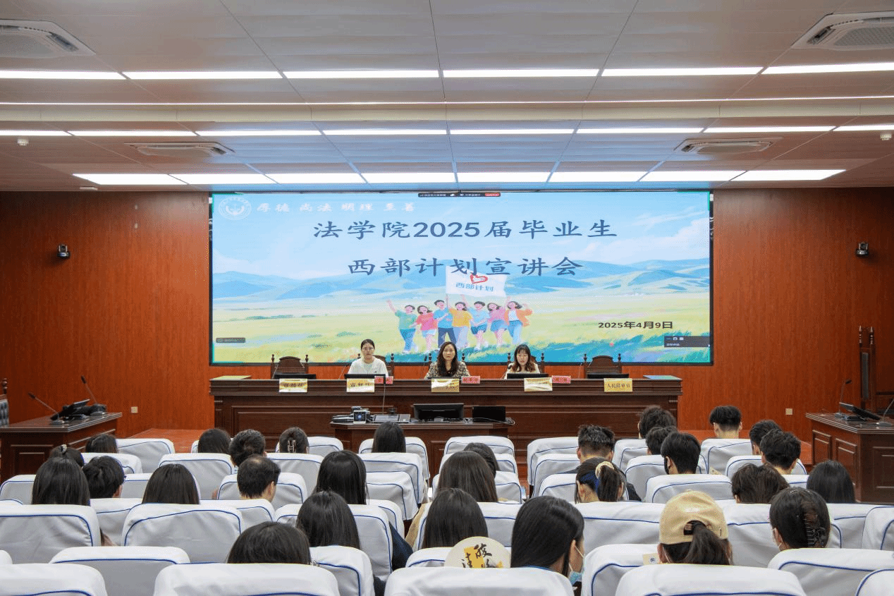 于4月9日在智慧模拟法庭3121进行2025届“西部计划”政策宣讲会。会议邀请了2023届毕业生分享他们参加“西部计划”的感悟。街射