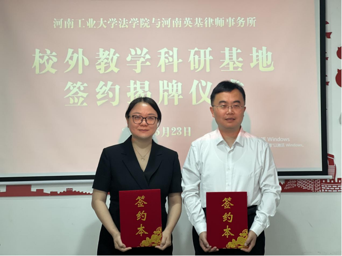 与河南英基律师事务所在知识产权领域共建教学科研基地,开展务实合作,是深化教学改革、提升人才培养质量的重要举措。张道许向校友介绍学院发展现状、师资队伍及学科发展等情况。随后双方在人才培养、实践教学、科研合作、学术交流、毕业生就业等方面开展了深入交流。会上,双方签订了共建教学科研基地协议,并进行了授牌仪式。