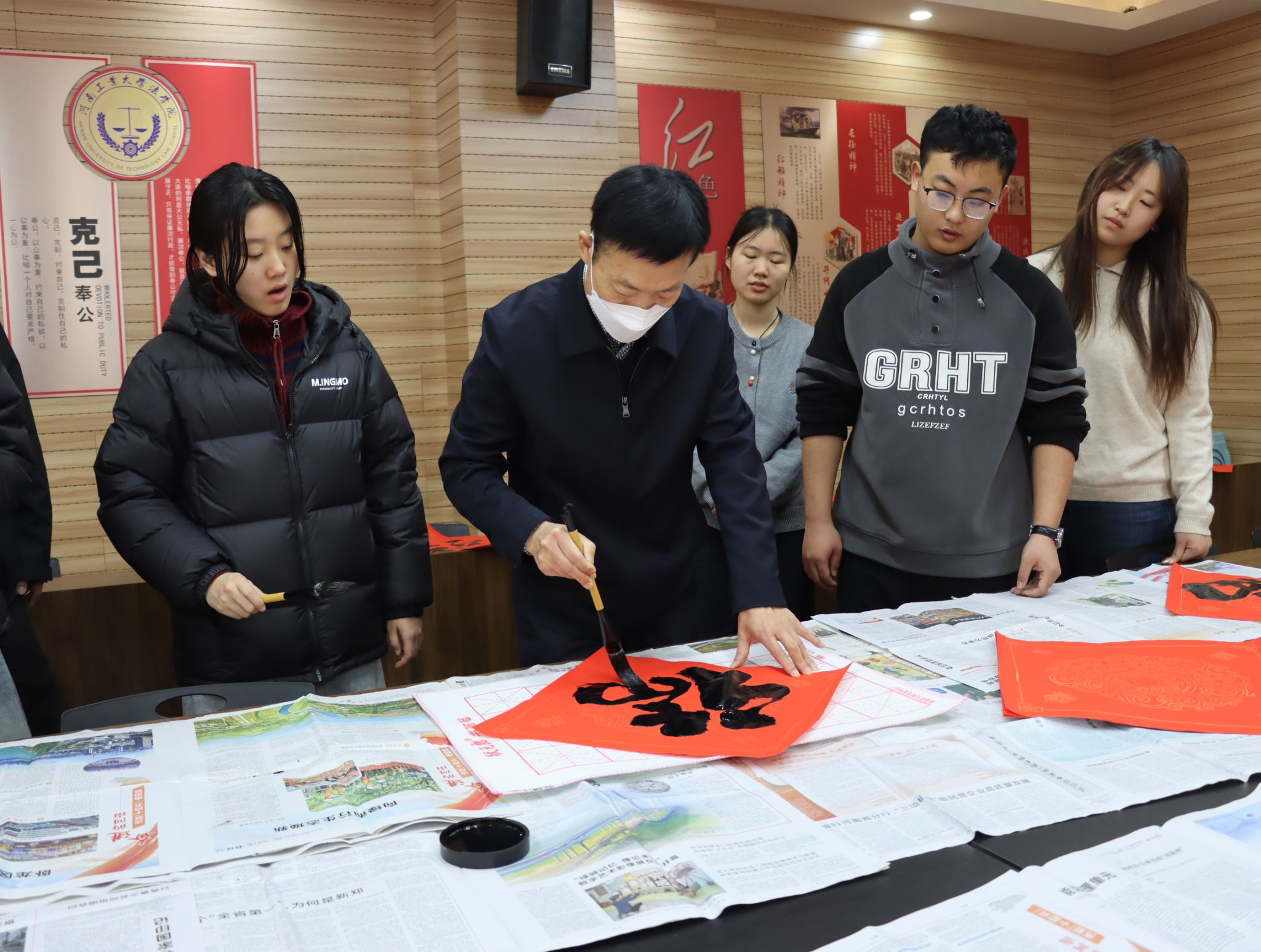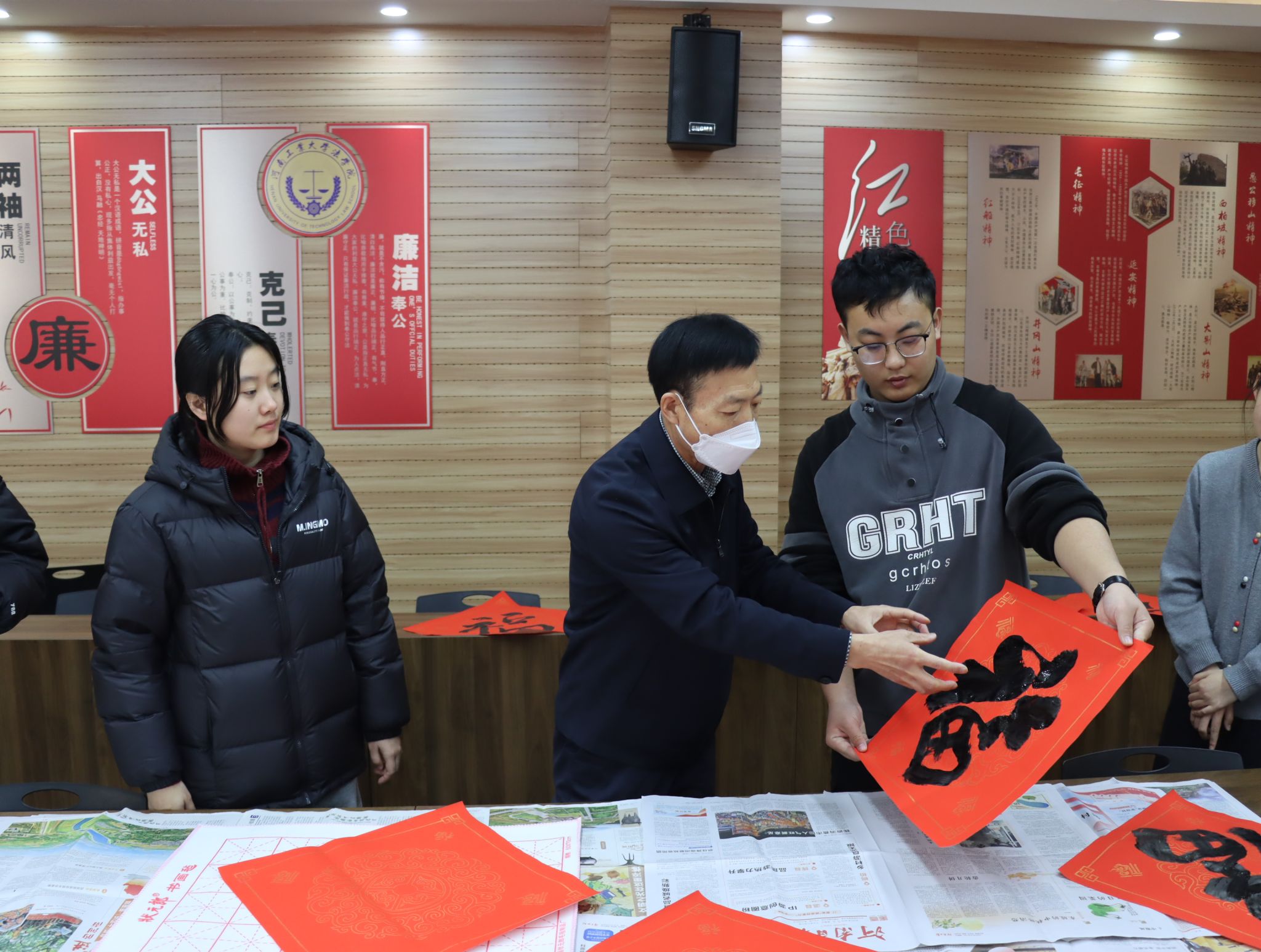 关工委在博识楼3424会议室举办“挥毫写福送吉祥”活动。关工委常务副主任陈从志与青年学子以笔为媒、以墨传情,共同书写饱含祝福的“福”字,为全院师生送上最真挚的新年祈愿,让墨香与暖意弥漫冬日校园。