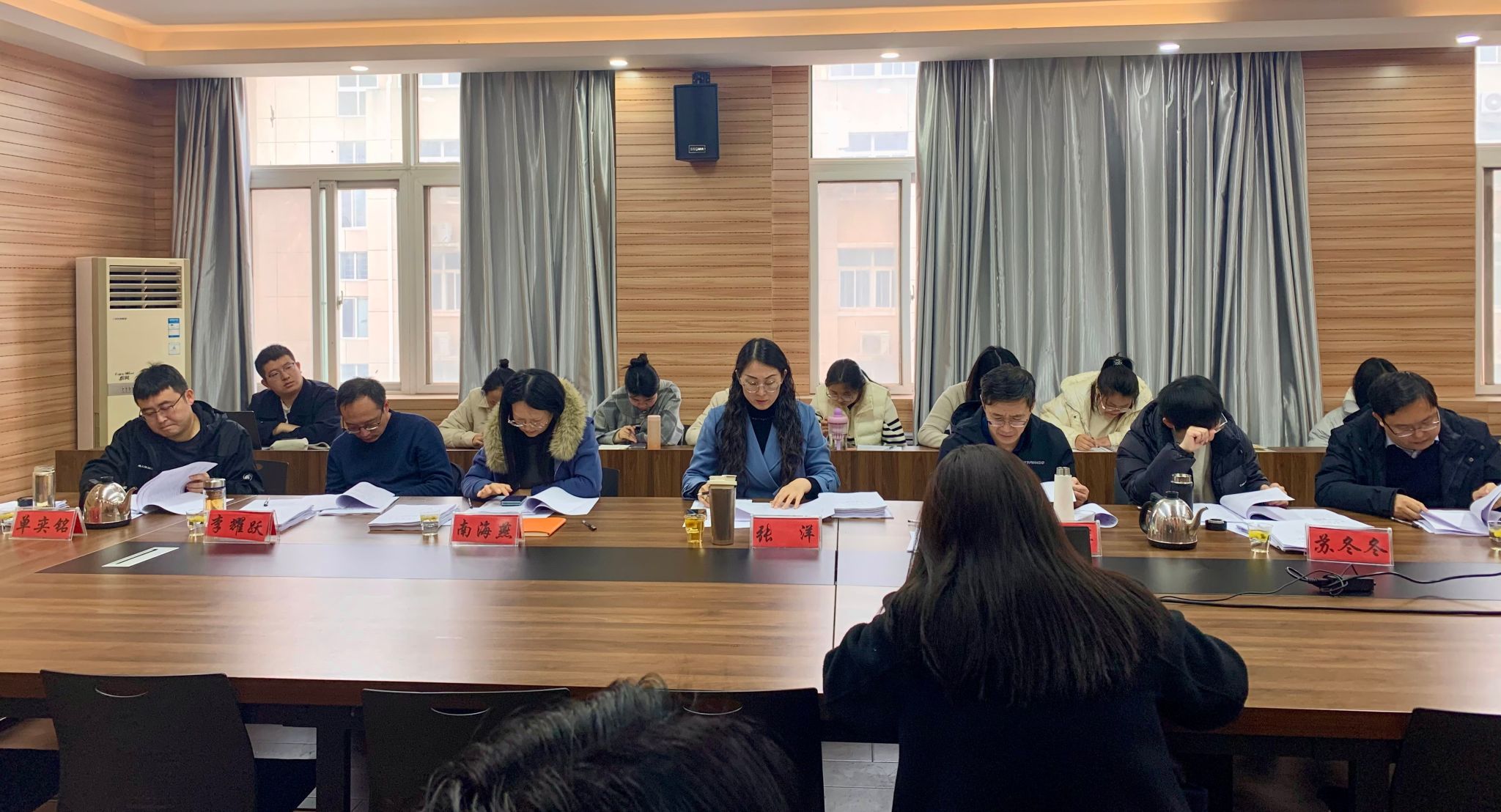 副院长南海燕、王君祥教授、李耀跃教授、单奕铭副教授、苏冬冬博士、王文明博士7位老师共同组成预答辩评审小组。2023级全体研究生参加了本次预答辩,街射