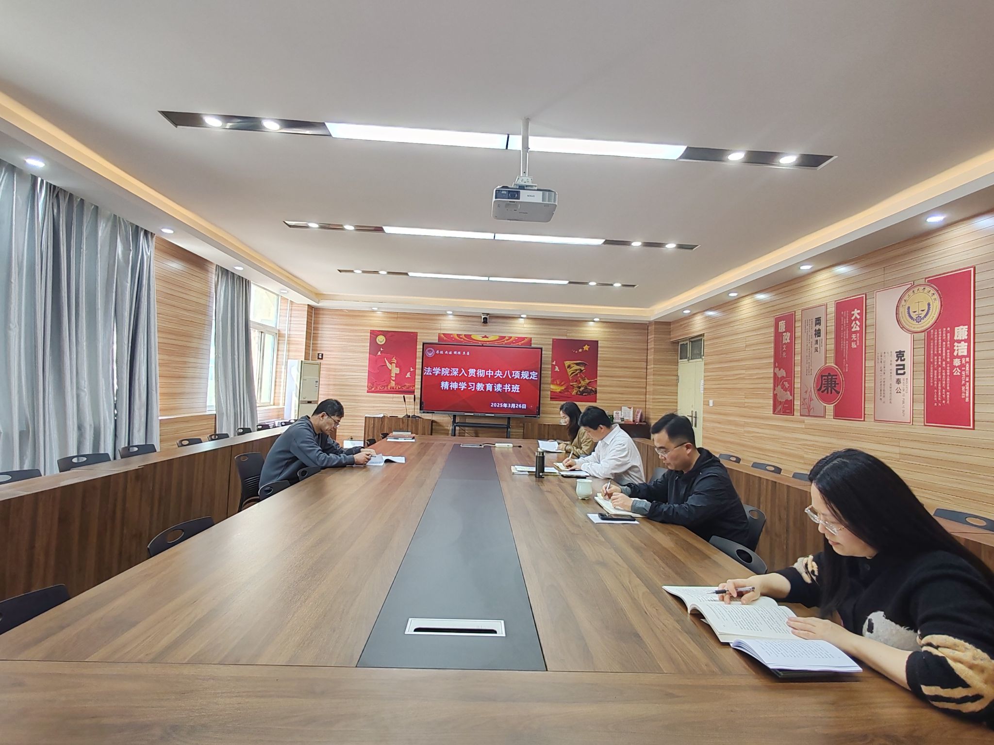 党委在3424会议室举办深入贯彻中央八项规定精神学习读书班。学院理论学习中心组成员参加学习。读书班由学院党委书记许文主持。