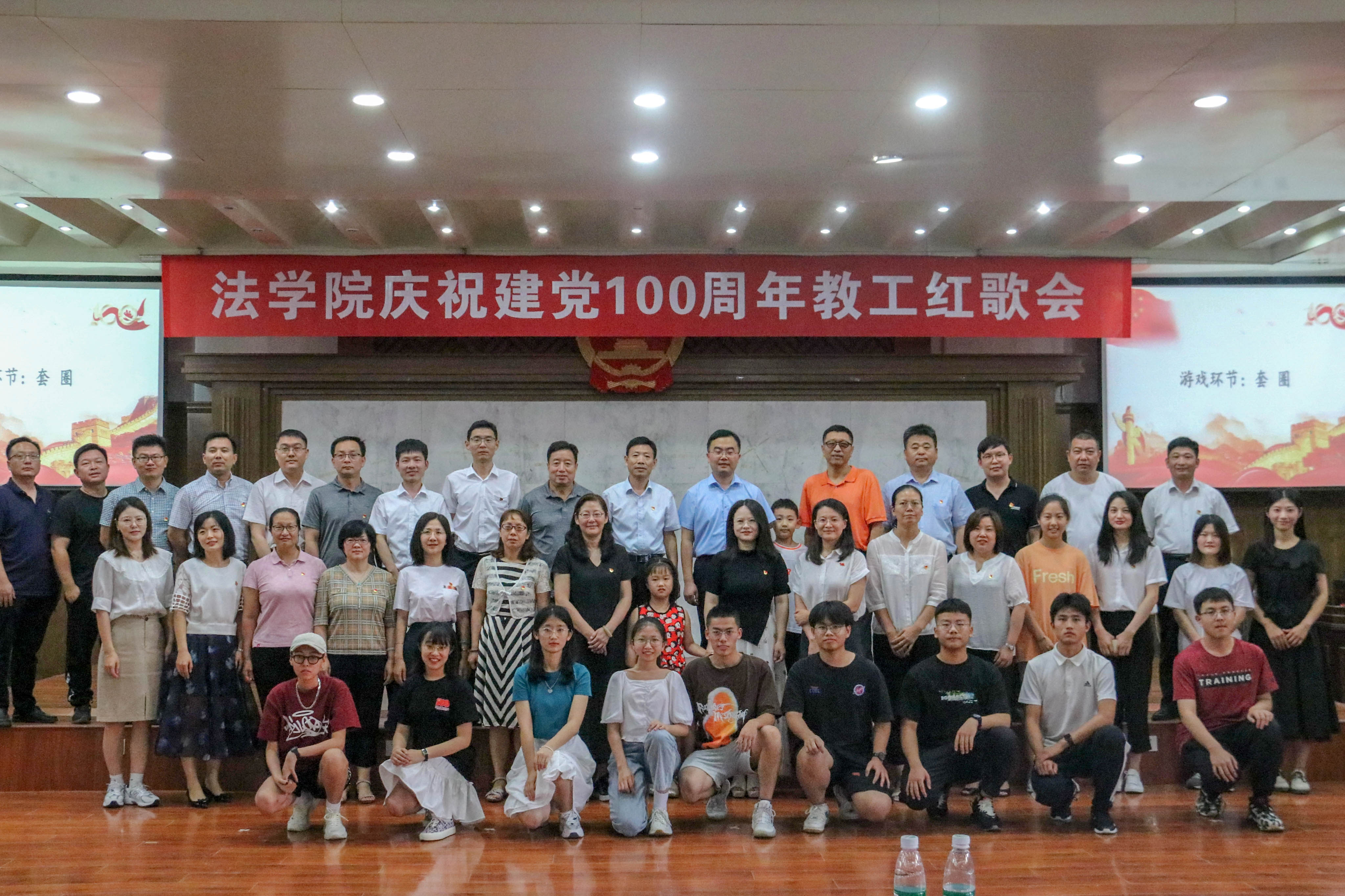 红歌会在铿锵有力的入党宣誓中拉开序幕,教职工在陈从志的带领下面向党旗、庄严宣誓,重温入党誓词,表达自己的坚定信仰、无限忠心。本次活动共11个节目,各教研室的教职工紧紧围绕“感党恩,听党话,跟党走”这一主题用铿锵有力和感人肺腑的声音献礼建党百年。王子涵、蔡静怡以优美的舞姿演绎《我和我的祖国》,抒发师生爱国之情;“上下千年一梦长,古今如一龙凤凰”,随着特邀嘉宾南迪的《龙文》歌声,我们回望泱泱大国五千年的文明史;“英雄儿女血染成,火映红星心更亮”,一曲《映山红》唱出了苏区人民渴盼红军归来的强烈心声;舞台剧《夏家忠烈就义诗》展示了共产党人对人民的责任与使命;穆向明老师的《不忘初心》唱出了共产党历尽艰难困苦,仍初心不改的决心。民商法教研室的诗朗诵《长征颂》、国际行政党支部全体合唱《少年》、刑法教研室全体合唱《没有共产党就没有新中国》、国际法教研室演唱的《精忠报国》,唱出了对中国共产党峥嵘岁月的追忆,唱出了全体师生对党的衷心祝福。最后,由基础法刑法党支部带来的合唱《团结就是力量》把整场歌会推向了高潮。