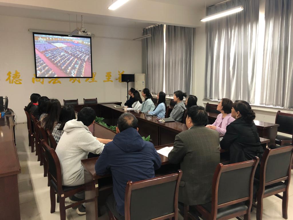 组织师生在3424会议室,集中观看纪念五四运动100周年大会的直播,学院党政全体成员及各年级学生代表参加,共同学习五四精神,感受大会的热烈氛围。