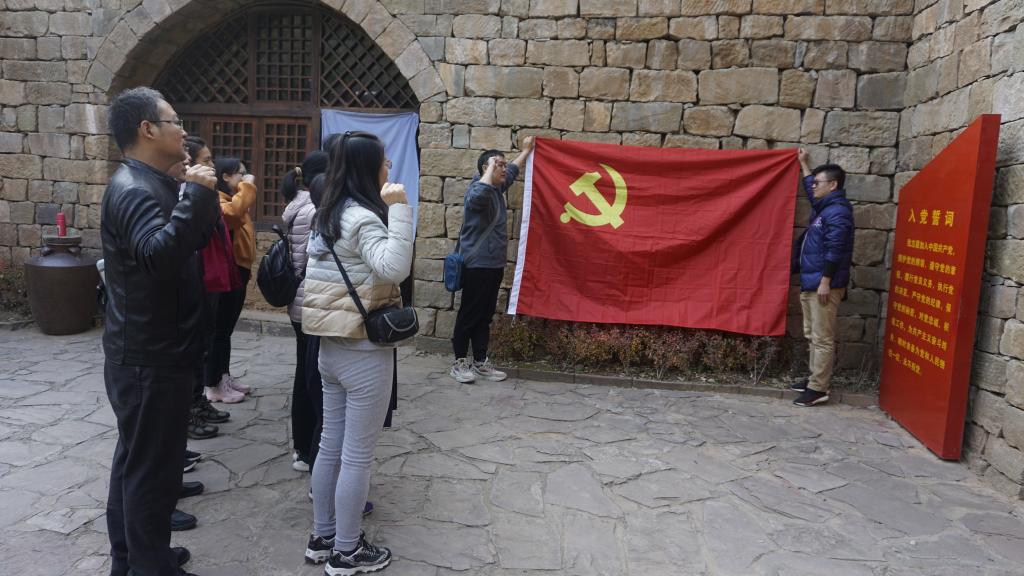 巍巍太行,雄浑壮美;愚公精神,感天动地。在两天的时间中,大家跟随基地讲解员探访了愚公故居与劳作复原场景,参谒了历代文人骚客咏叹愚公的诗词墙,观看了愚公移山精神宣传教育片,集体诵读了列子脍炙人口的《愚公移山》一文,实地体验了愚公等人挖山搬石的辛劳过程。尽管大家对愚公移山的故事并不陌生,但是通过这一系列生动直观形象的现场教学,让大家对愚公人格魅力的认识有了新的升华,对愚公移山精神的感悟有了质的飞跃,对新时代如何将这种精神发扬光大有了更加深刻的认识。在入党誓词处,大家带着对以愚公为代表的朴实勤劳美丽的人民群众的崇敬之心,庄严地举起自己的右手,集体重温了入党誓词。