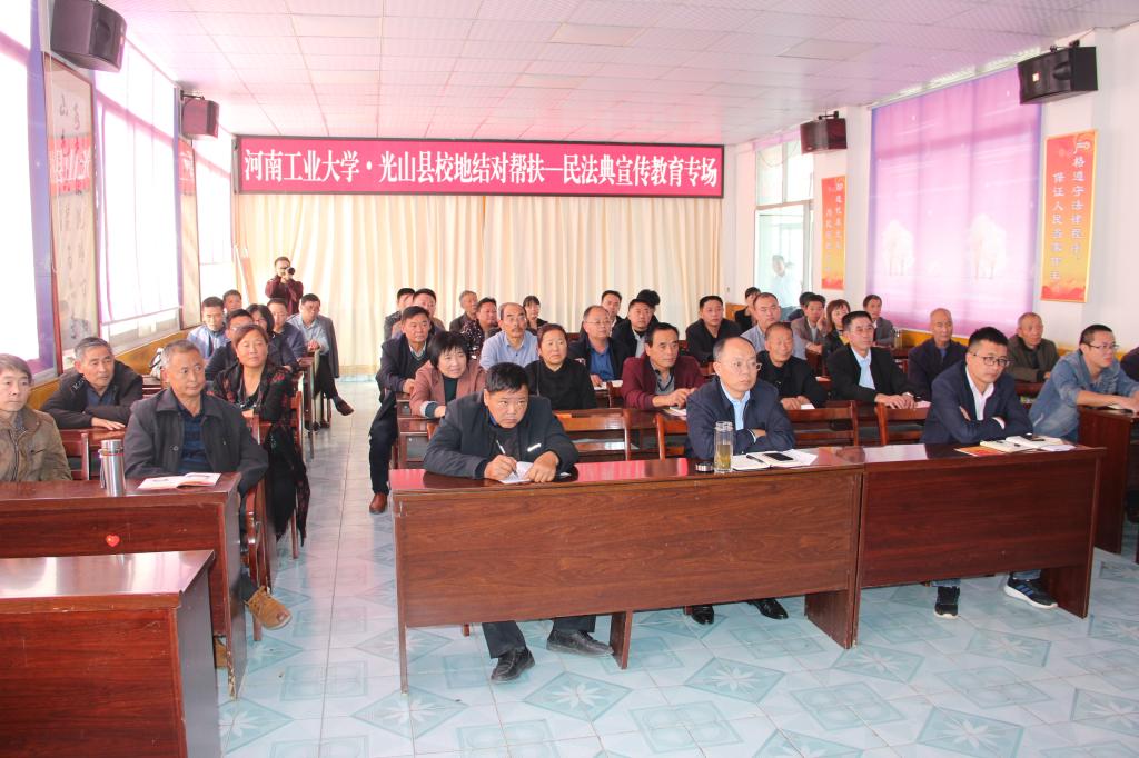 ·光山县校地结对帮扶——民法典宣传教育专场”主题报告,仙居乡党委副书记詹诚主持报告会,仙居乡各村“两委”干部、村民代表60余人参加了报告会。