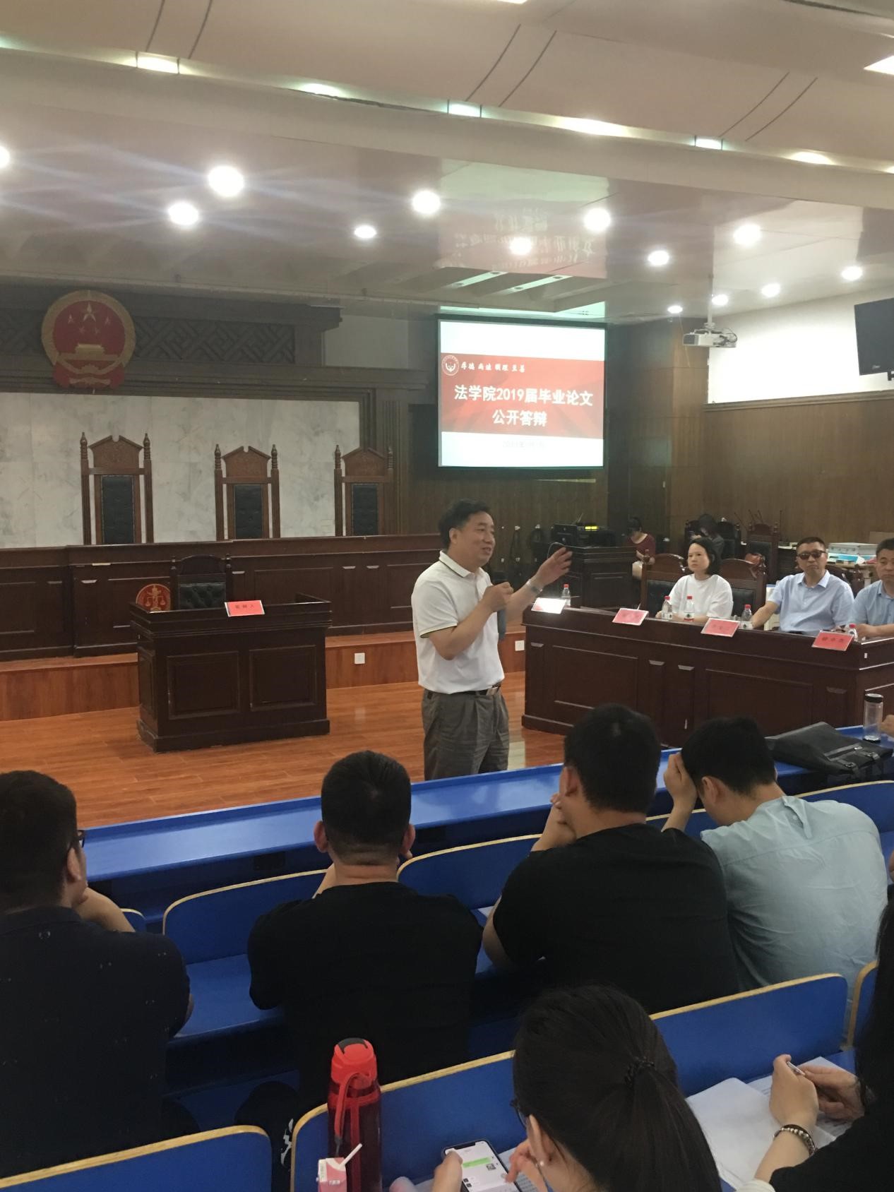 模拟法庭举行。法学专业各方向七位高级职称教师组成了答辩委员会,街射
