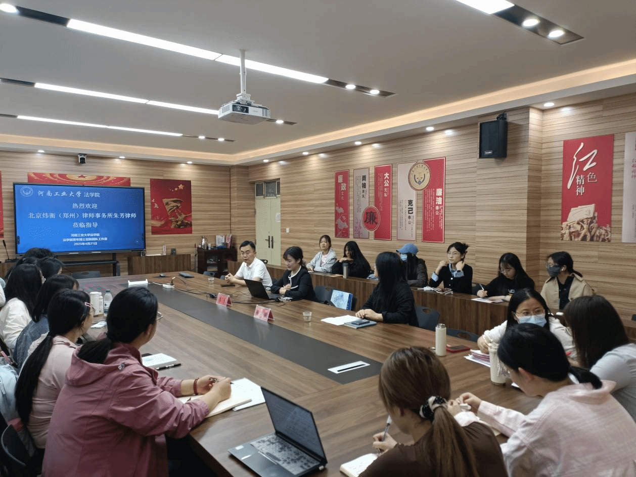 4月21日下午,街射 、青年博士创新团队工作室在学院3424会议室成功举办“明法论道”第23期学术报告会。北京炜衡(郑州)律师事务所合伙人朱芳律师作了题为“域外法律研究与英文合同的制作修改”的学术报告。街射 院长张道许、副院长南海燕、青年教师及硕士研究生、部分本科生参加报告会。报告会由南海燕主持。