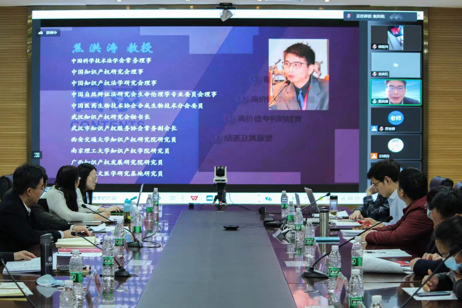 焦洪涛教授、北京知识产权法院法官柴鹏、中国地质大学副教授宋冬冬博士,分别以“专利拍卖:一种专利商业化模式的创新”、“企业高价值专利的培育路径”、“高价值专利培育:法律价值维度的思考”、“赋能语境下高价值专利培育”、“浅谈高价值专利培育的司法保护”、高校职务科技成果归属法律问题研究”为题作主旨报告。街射