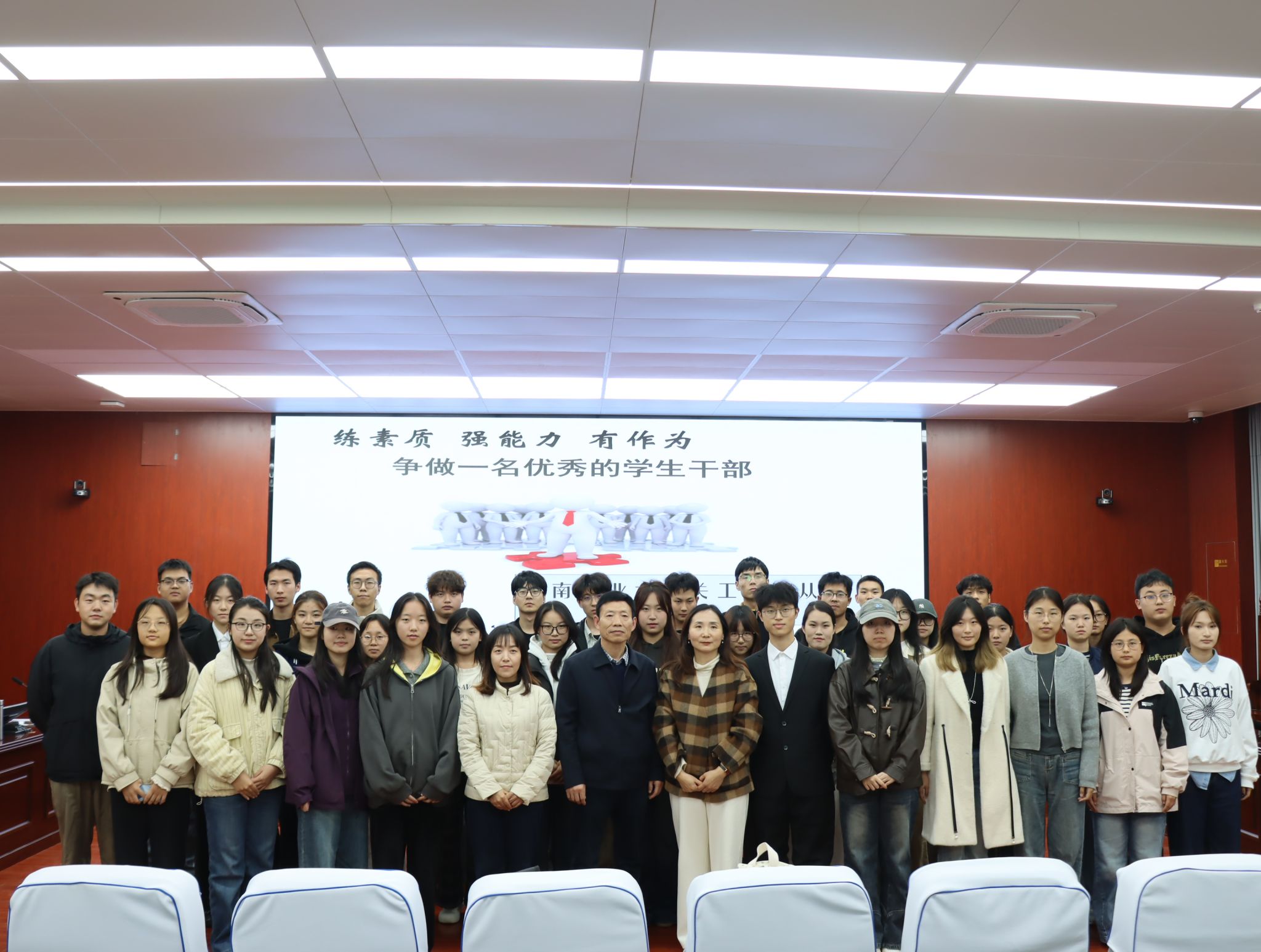 第二十一届学生工作人员就职典礼暨“青马工程”团学骨干培训班的召开,为同学们提供了一个重要的交流平台和学习机会,新一届学生工作人员将以更加昂扬的姿态投身学院建设,为学院高质量发展注入青春动能。(撰稿:周静/摄影:王艺涵/审校:张翠华/审核:许文)