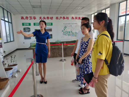 进入展厅,讲解员向成员们介绍了司马光油茶园的前世今生。槐店乡的地形以低山丘陵为主,崎岖的地表导致这里难以展开机械化耕种。随着农业种植的人力成本的不断增长,农民们便将土地撂荒。裸露黄土地遇到阴雨天便发生水土流失,遇到大风天便出现尘暴,当地农民苦不堪言。司马光油茶园董事长陈世法先生在承包了近3万亩荒山荒坡后,通过种植油茶树,发展绿色经济,为荒有茶园山披上了一望无际的油茶“绿”,一度绝迹的锦鸡、野兔又在林地间安了家。
