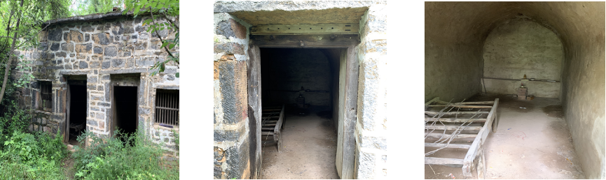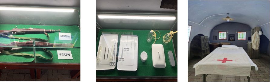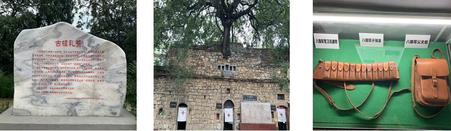 此处遗址现存四间石窑,石窑上方有一株枝叶繁茂、铺天盖地的古橿树,据说这棵树的树龄近万年,巨大的枝叶将整个院落覆盖的严严实实的,被当地人称为“英雄树”,院子的一边有一座人们打造的皮定均司令的石像。随后,小组成员依次参观了三间窑洞,第一间窑洞里面摆放了当年八路军用过的枪支、衣服、水壶等物品;第二间窑洞里存放着当年的手术器具,正中间有个病床用来做手术;最后的三号窑洞是一间黑黑的房间,我们猜测它之前可能是厨房。而第四个窑洞是让我们最意外的,也是令我们最惊喜的,这里是一位老爷爷的住所,他是当年儿童团的团长,亲身经历了当年的战斗,我们坐在凳子上听着老爷爷讲述当年的故事,说到动情处老爷爷还留下了眼泪,我们能够清楚地感受到老爷爷在讲述时的自豪感,感受到在老爷爷身上体现的不畏牺牲,无私奉献的英雄气概,这使我们深受震撼与感动,这应该就是中华民族数千年来屹立于东方大地的原因吧!