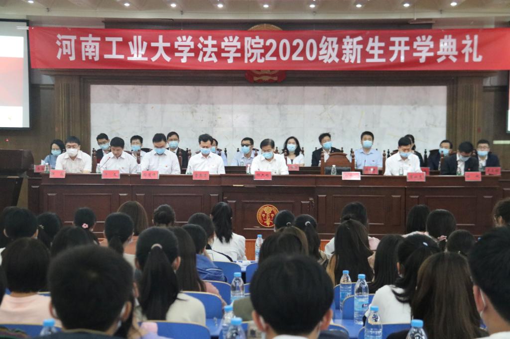 2020级新生开学典礼在3号楼教学楼模拟法庭隆重举行。教务处处长杨六栓、街射
