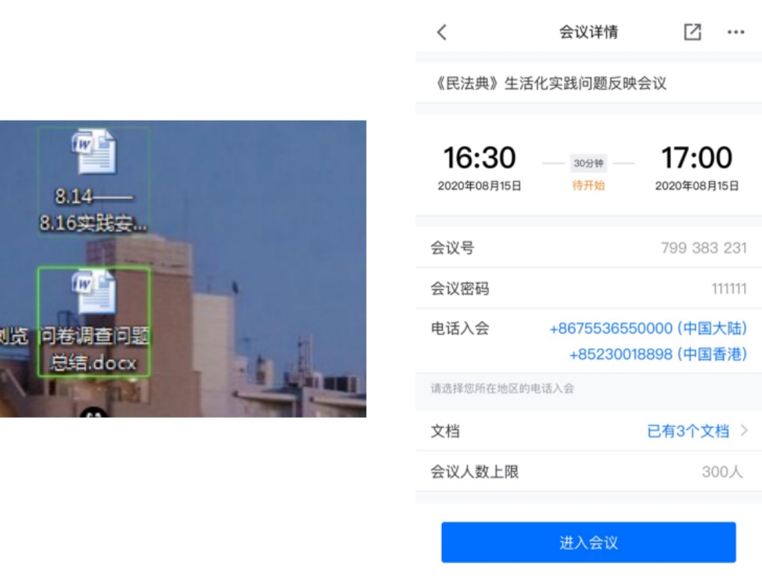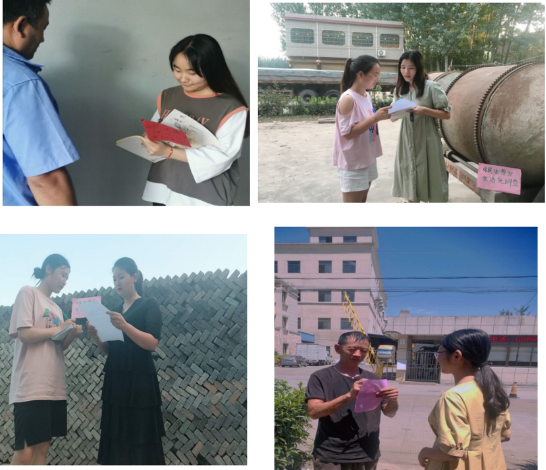 在前期学习《民法典》,讨论实践内容,宣传方式,设计调查问卷,访谈问题,实践规划等安排之后,我们团队决定于8月14日正式开展跨五省,携城镇,线上线下同步进行的以“《民法典》生活化”为主题的实践活动。