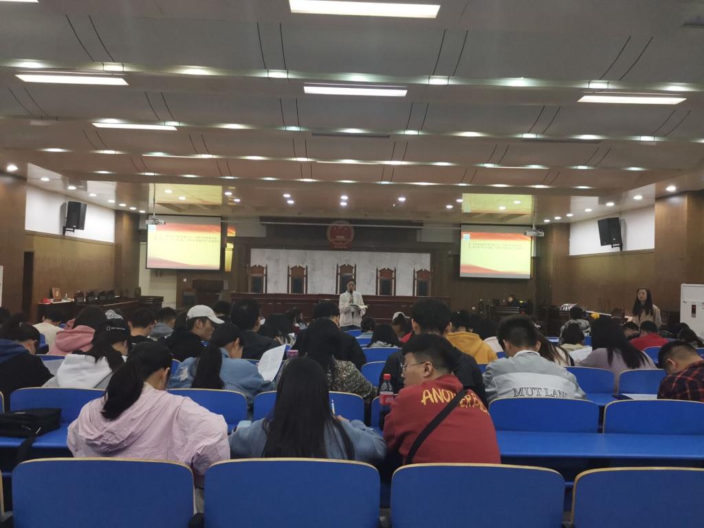 在新模拟法庭3121进行2019年国家助学贷款合同签订工作。学院团委书记兼学工班主任赵静、资助助理以及街射