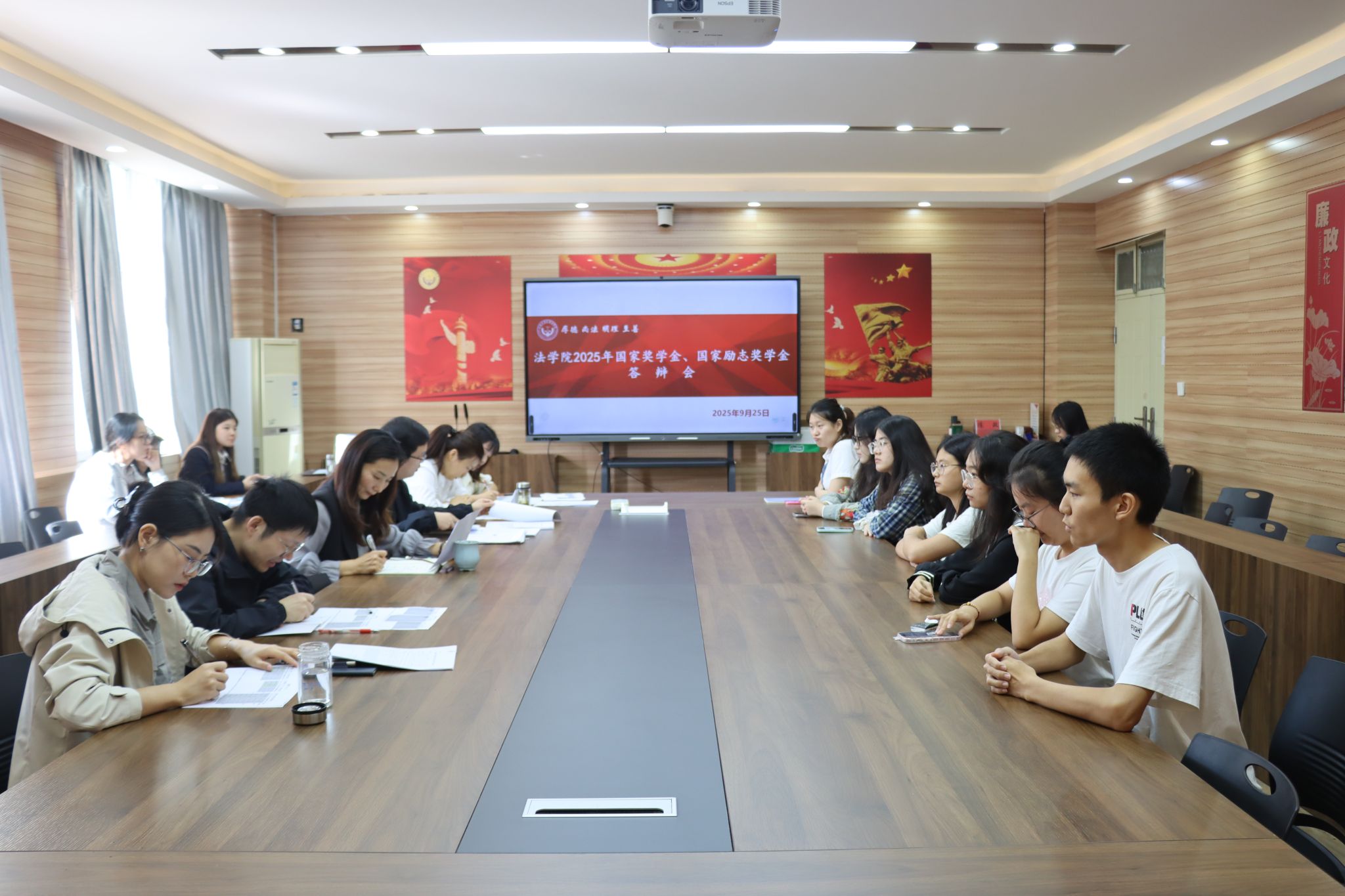 在3424会议室召开2025年国家奖学金、国家励志奖学金答辩会,学院党委副书记、全体辅导员、班主任及61位候选人参加会议,会议由团委副书记周静主持。