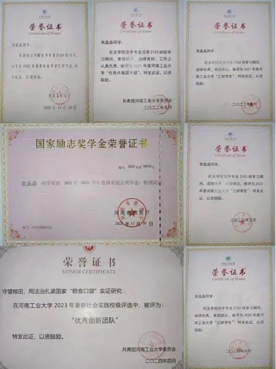 法学专业2103班学生,中共党员,前三学年平均学分绩点4.16,综合排名专业第三。在校期间曾荣获国家励志奖学金、校优秀学生奖学金、校优秀共青团干部、校三好学生等荣誉称号,现担任街射