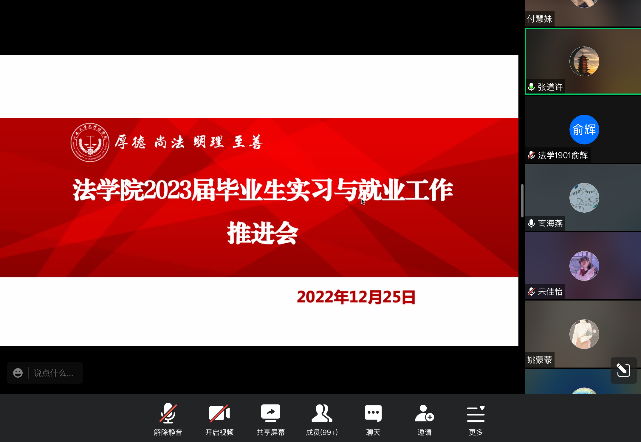 在考研结束后,随即通过腾讯会议平台举行2023届毕业生实习与就业工作推进会,部署毕业生实习相关工作,同时吹响2023届毕业生就业号角。街射